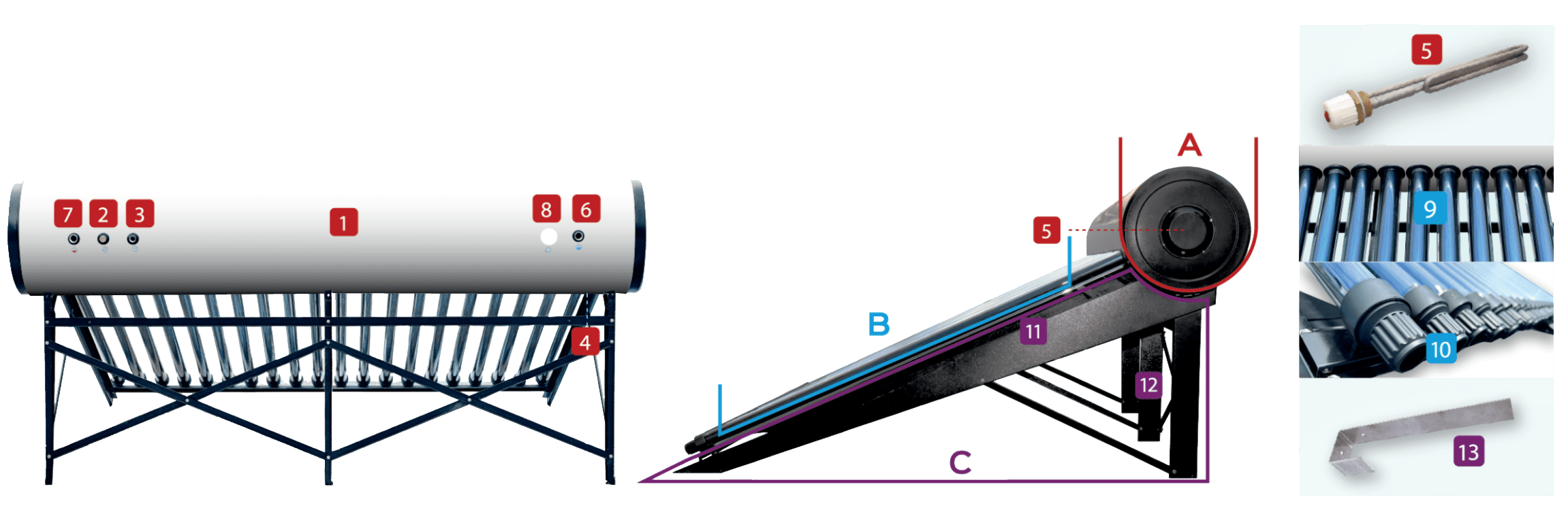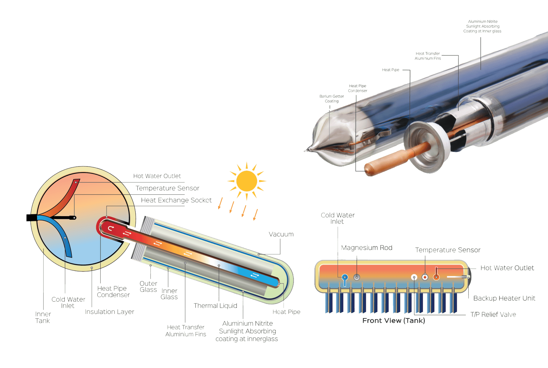 Improved Efficiency - Increase the effective surface area for sunlight; Minimize the Heat Loss of the solar collector; Improve Heat Transfer Efficiency; Maintain Hot Water Overnight.